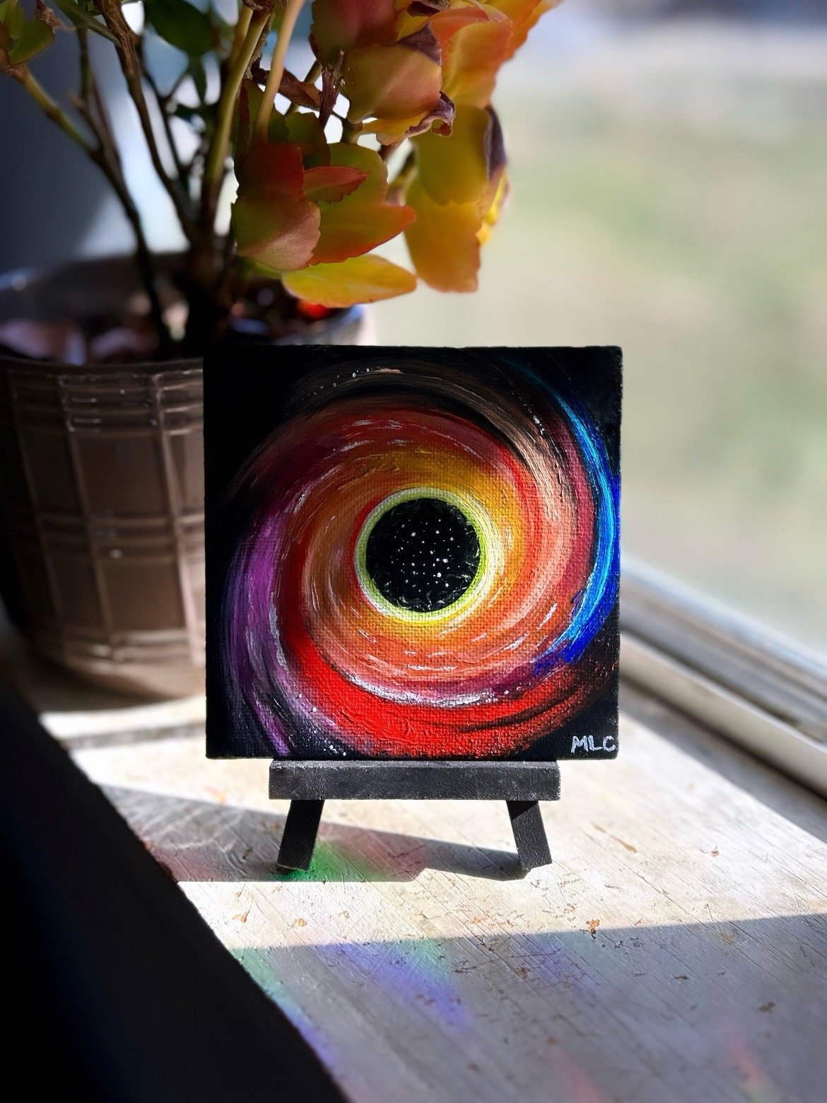 4" x 4" original oil painting on canvas board with black wood mini display easel