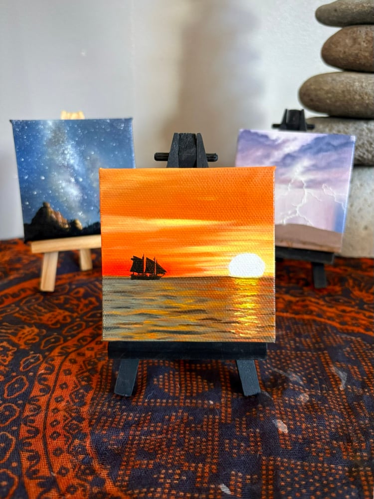 3” x 3” mini oil painting with black wood easel